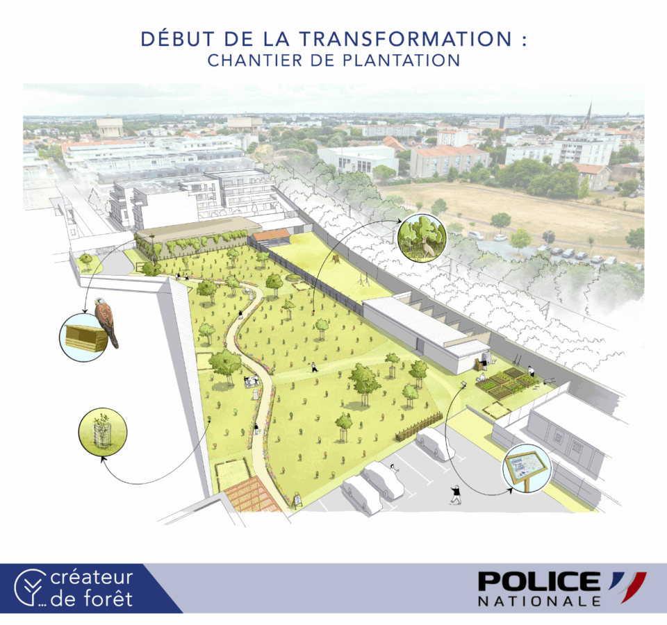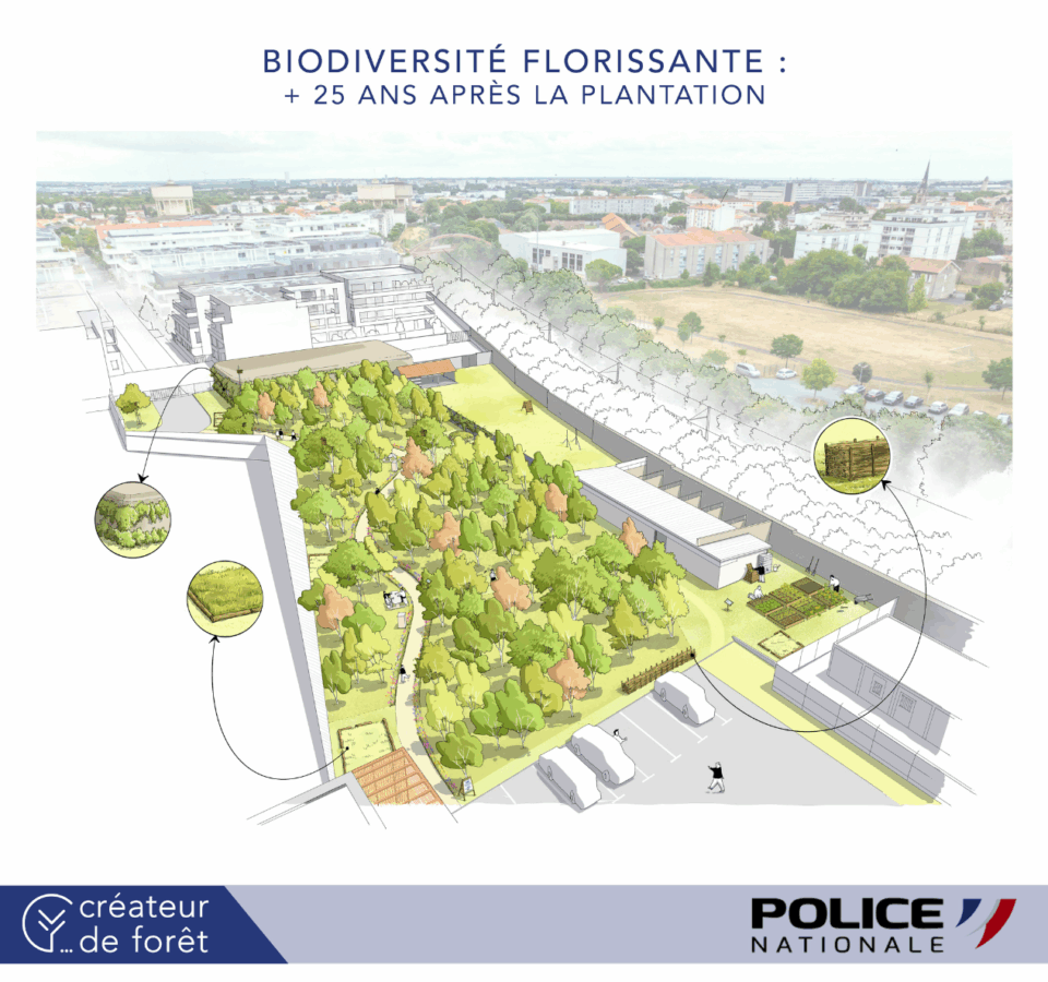 Une convention de partenariat a été signée entre Créateur de forêt et la Direction Interdépartementale de la Police Nationale (DIPN) 17 pour contractualiser le projet de biodiversité.