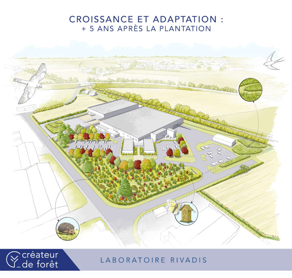 Pour renforcer ses engagements environnementaux en faveur de la biodiversité, le Laboratoire Rivadis a fait appel à Créateur de Forêt pour proposer des solutions concrètes pour le vivant et offrir un espace de nature aux salariés. Ce projet s’inscrit dans la continuité des engagements déjà pris par le Laboratoire Rivadis, partenaire depuis 3 ans de Créateur de Forêt qui a déjà soutenu et participé aux projets d’Allonne (79), de Jaure (24) et d’Aigondigné (79).